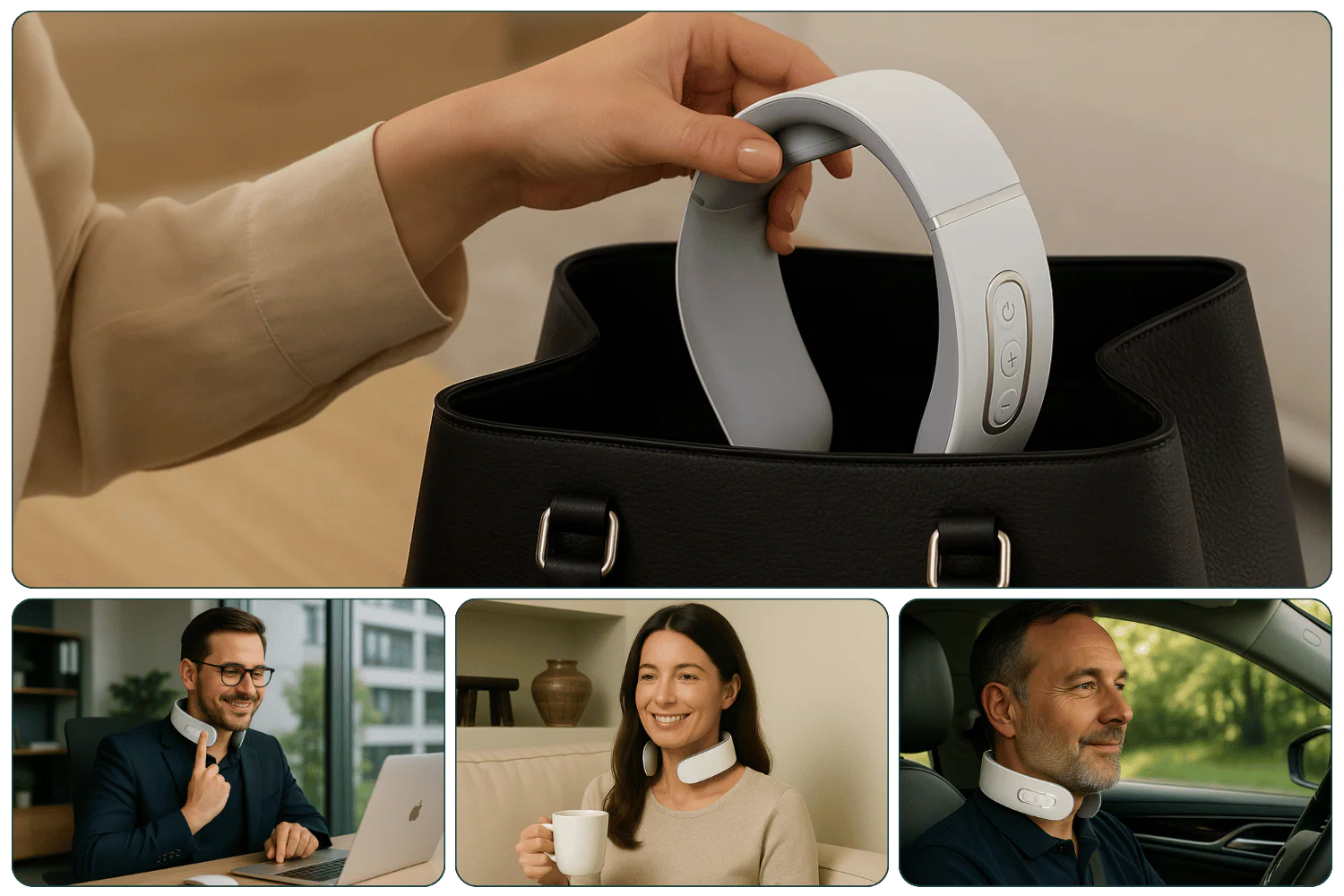 Tensions, maux de tête et vertiges ? NeoNuque™ détend les muscles de votre nuque en seulement 15 minutes, quand vous voulez et où vous voulez.